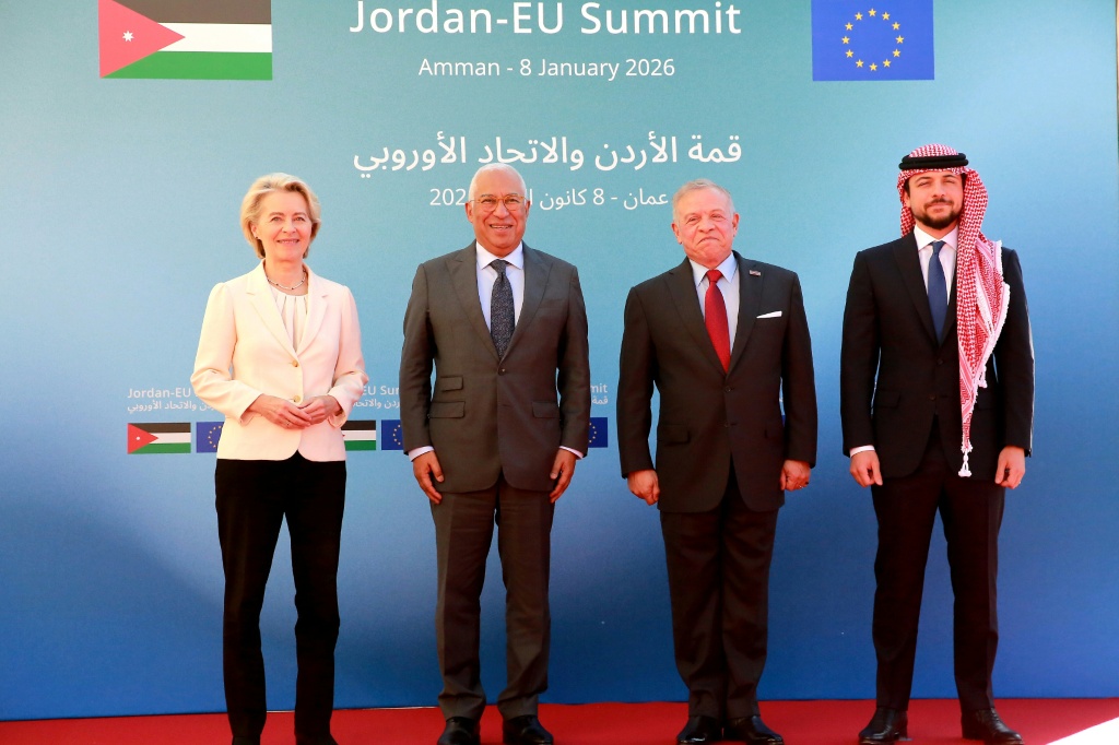 وجاء في بيان مشترك صدر بعد اجتماع بين الملك عبد الله الثاني ورئيس المجلس الأوروبي أنتونيو كوستا ورئيسة المفوضية الأوروبية أورسولا فون دير لاين، أن الطرفين يدعمان “الجهود الرامية إلى تحقيق الاستقرار والمصالحة وبناء المؤسسات وإعادة الإعمار والتعافي الاجتماعي والاقتصادي في سوريا”.