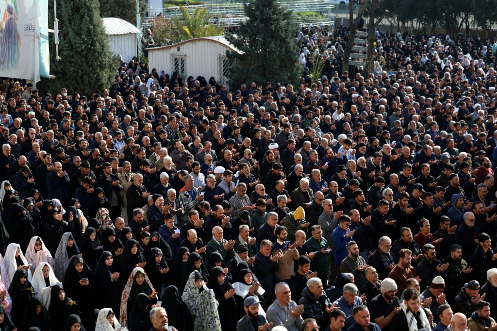 ومع بزوغ الفجر، احتشد جمع غفير من المصلين في جامع الإمام الخميني الكبير بوسط طهران، والذي يحمل اسم مؤسس الجمهورية الإسلامية.