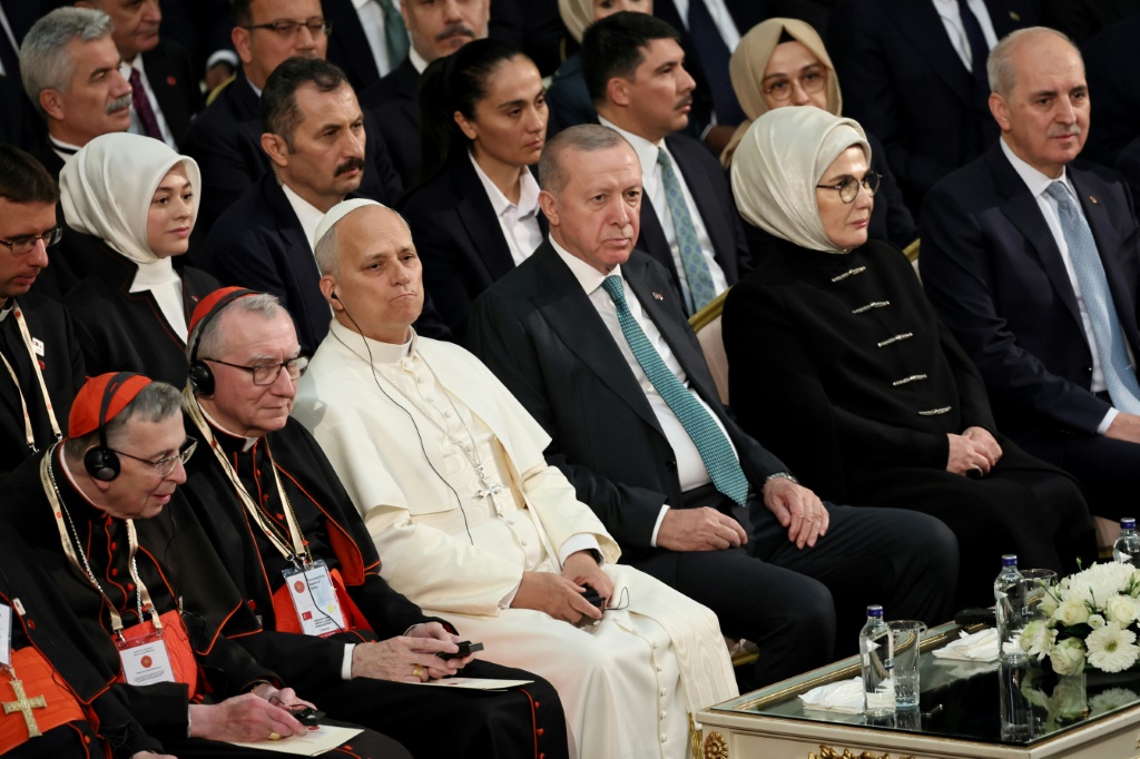 في “مرحلة تشهد تصارعا قويا على مستوى العالم”، دعا البابا في خطاب متحفّظ يتماشى مع النبرة التي طبعت الأشهر الستة الأولى من حبريته، تركيا إلى أن تكون “عامل استقرار وتقارب بين الشعوب، في خدمة سلام عادل ودائم”.