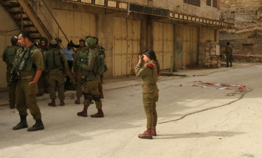 الامن الاسرائيلي في موقع هجوم فلسطينية على جندي اسرائيلي محاولة طعنه قبل اردائها برصاص الشرطة في الخليل بالضفة الغربية المحتلة في 13 شباط/فبراير 2016 afp_tickers
