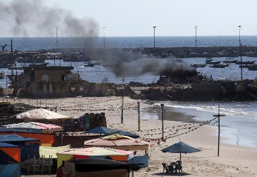 الدخان يتصاعد من كوخ على شاطئ في غزة اثر ضربة اسرائيلية في 16 تموز/يوليو 2014 قال مسعفون انها ادت الى مقتل اربعة اطفال afp_tickers
