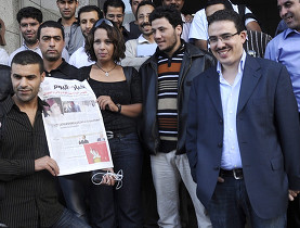 مساء يوم الاثنين 28 سبتمبر 2009، اقتحمت قوات الشرطة بزَي مدني مقرّ جريدة “أخبار اليوم”، التي تصدر منذ ستة أشهر تقريبا، في الوقت الذي كانت فيه الأجهزة الأمنية تجمَـع من الأكشاك أعداد الجريدة الصّـادرة يوم السبت 26 ويوم الاثنين 28 سبتمبر، ومنعت وصول عدد يوم الثلاثاء 29 سبتمبر الذي كان جاهِـزا إلى الأكشاك، وأصدرت وزارة الداخلية بلاغا أعلنت فيه قرار مُـتابعة الجريدة وحجْـزها مع اتِّـخاذ التّـدابير الملائِـمة بخصوص وسائلها ومقرّاتها، بسبب نشرها في عددها المؤرخ بـ 26 و27 سبتمبر رسما كاريكاتوريا له علاقة باحتِـفال الأسرة الملَـكية بحدَث له طابَـع خاصّ جدا.