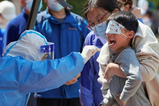 طفل يخضع لفحص كوفيد في شنغهاي بتاريخ 17 نيسان/أبريل 2022 afp_tickers