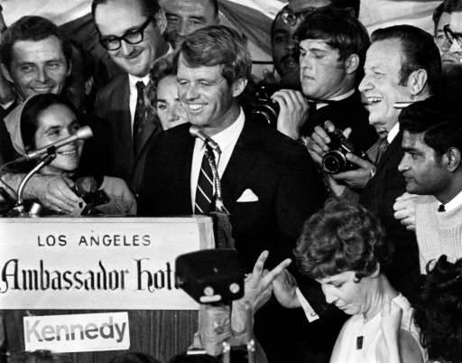 روبرت كينيدي في فندق امباسادور بلوس انجليس في 5 حزيران/يونيو 1968 قبل لحظات على مقتله afp_tickers