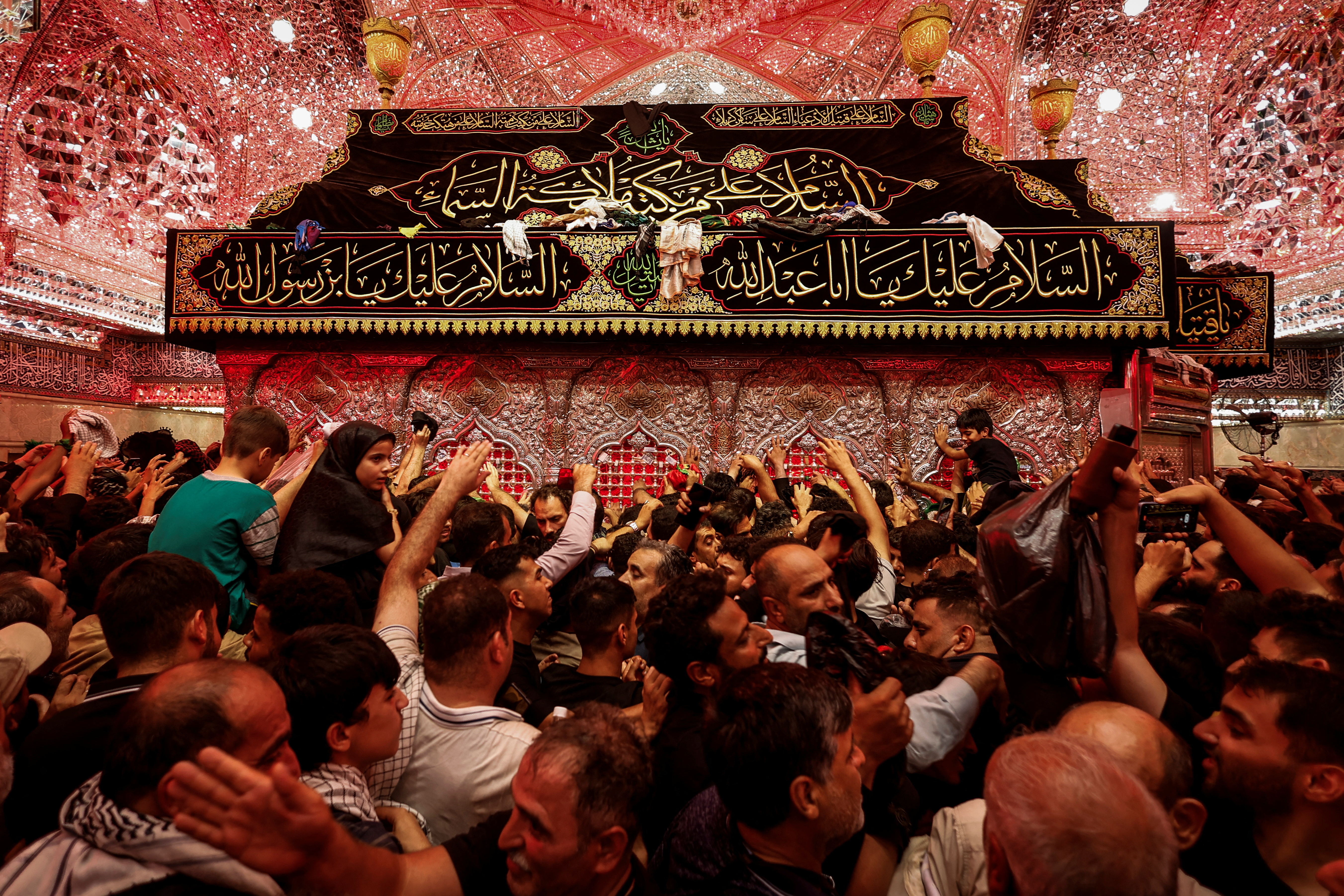 ومع اقتراب رحلته من نهايتها، تمنحه رؤية كربلاء ومرقد الحسين شعورا بالبهجة. ويزدحم المكان بالزوار الذين يتوافدون عليه. ويزوره أكثر من 20 مليونا كل عام ويقع داخل مسجد ضخم ذي قبة ذهبية مزين بمداخل مزخرفة وبوابات خشبية وأعمال زجاجية.