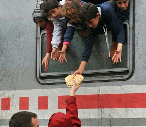 ناشطون يوزعون الطعام على مهاجرين داخل قطار متجه الى بلدة موتوف afp_tickers