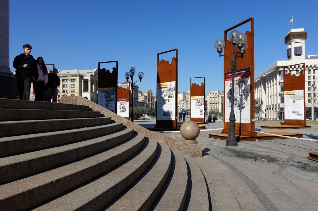 وشاهد مراسلو وكالة فرانس برس حطام مسيّرة روسية بالقرب من نصب الاستقلال في ساحة ميدان في وسط كييف.