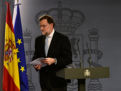 وتحدث رئيس الحكومة الاسبانية المحافظ المنتهية ولايته في الوقت الذي يمكن ان يضعف فيه راس السلطة الاتحادية بسبب الوضع الناجم عن الانتخابات التشريعية في 20 كانون الاول/ديسمبر 2015.