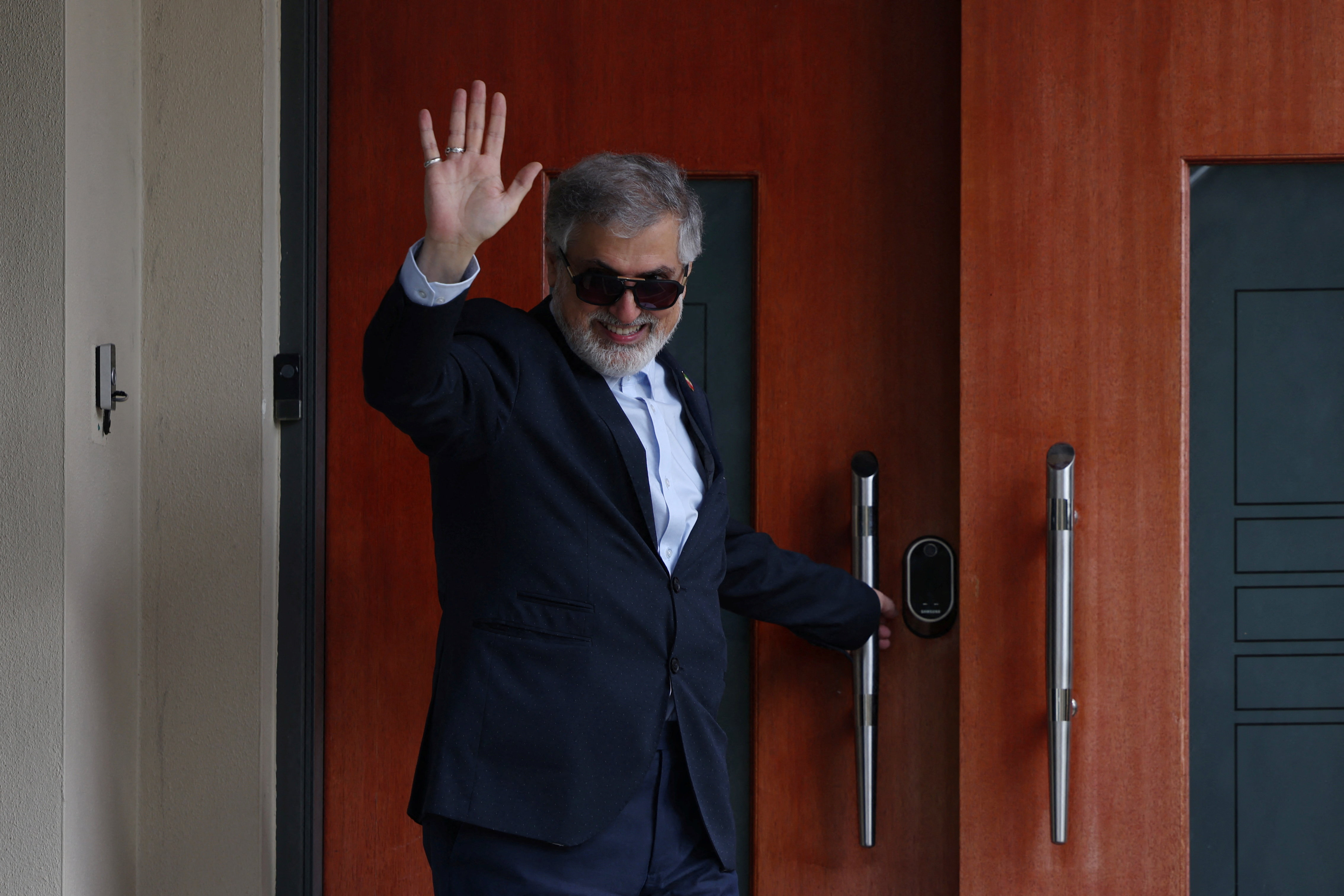 وفي وقت سابق في كانبرا، خرج صادقي من مقر إقامته ليقول وداعا.