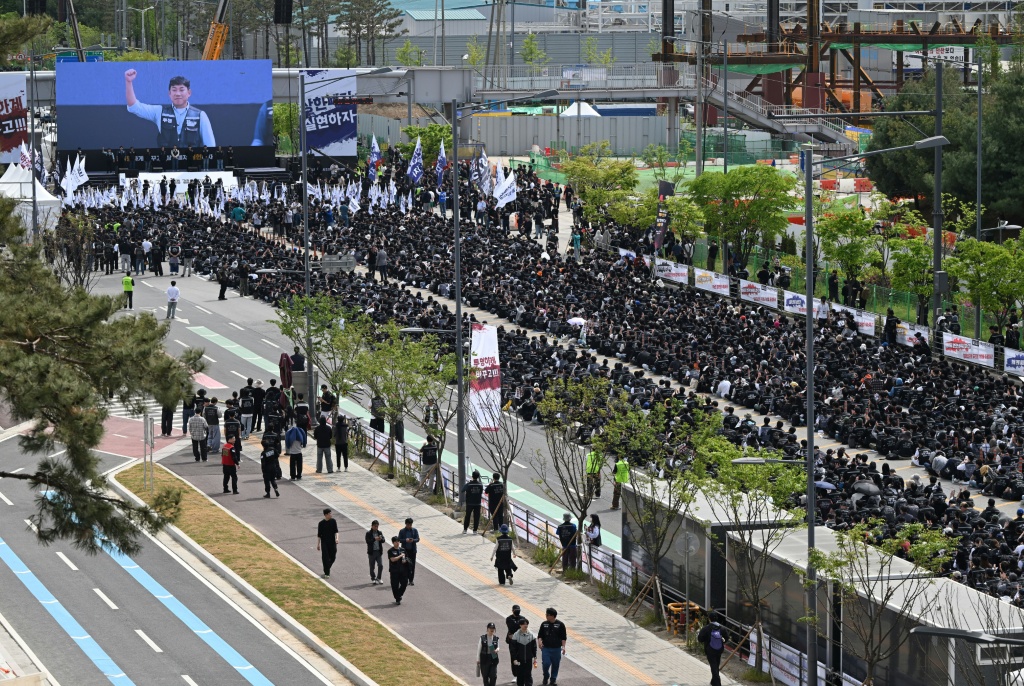 تظاهر عشرات الآلاف من موظفي شركة “سامسونغ” للإلكترونيات في كوريا الجنوبية الخميس، مطالبين بزيادة رواتبهم ومخصصاتهم، ملوّحين بالإضراب في حال عدم تلبية مطالبهم.