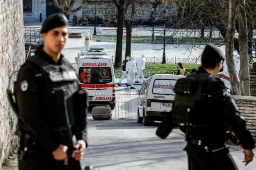 الشرطة وعربات الاسعاف امام المسجد الازرق بعد هجوم انتحاري في حي السلطان احمد التاريخ في اسطنبول، الثلاثاء 12 كانون الثاني/يناير 2016 afp_tickers