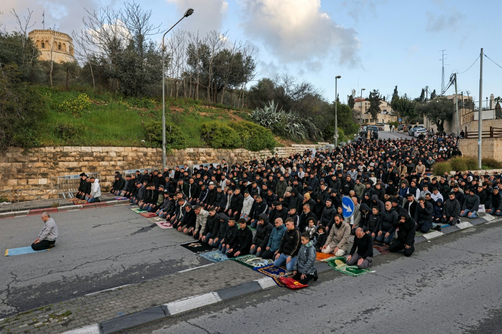 وقال ناطق باسم الشرطة الإسرائيلية في وقت لاحق إن قوات الأمن “سمحت بإقامة الصلوات في الشارع (…) من دون تدخّل، رغم مستوى التأهّب المرتفع””.