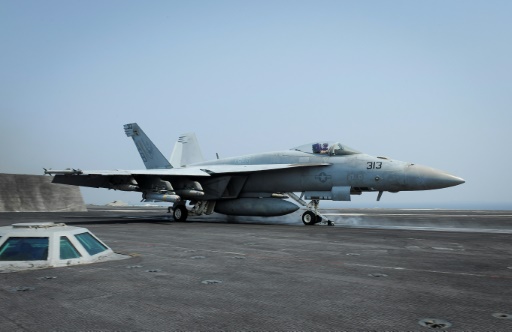 طائرة اف 18 سوبر هورنيت اميركية على متن حاملة الطائرات يو اس اس روزفلت في الخليج afp_tickers