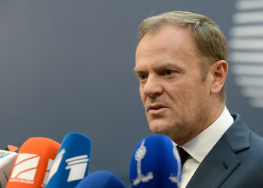 رئيس مجلس اوروبا دونالد توسك يتحدث الى الصحافة في بروكسل 17 ديسمبر 2015 afp_tickers