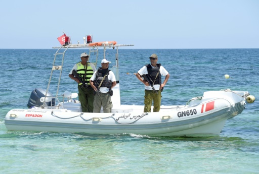 عناصر من قوات الامن التونسية يراقبون شاطئ سوسة اثناء مراسم احياء لذكرى ضحايا الهجوم، في 3 تموز/يوليو 2015 afp_tickers