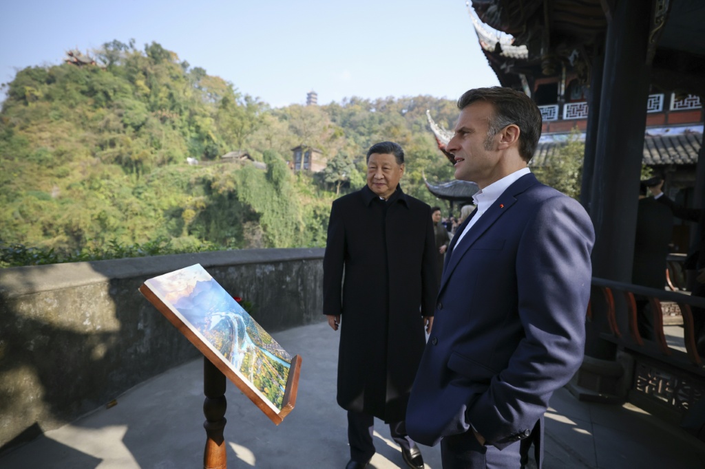 فبعيدا من قصر الشعب في بكين، حيث التقى الرئيسان الخميس، رافق شي جينبينغ وعقيلته بينغ ليوان ماكرون وزوجته بريجيت في زيارة لسد دوجيانغيان الأثري الواقع جنوب غرب الصين، والمدرج على قائمة اليونسكو للتراث العالمي.
