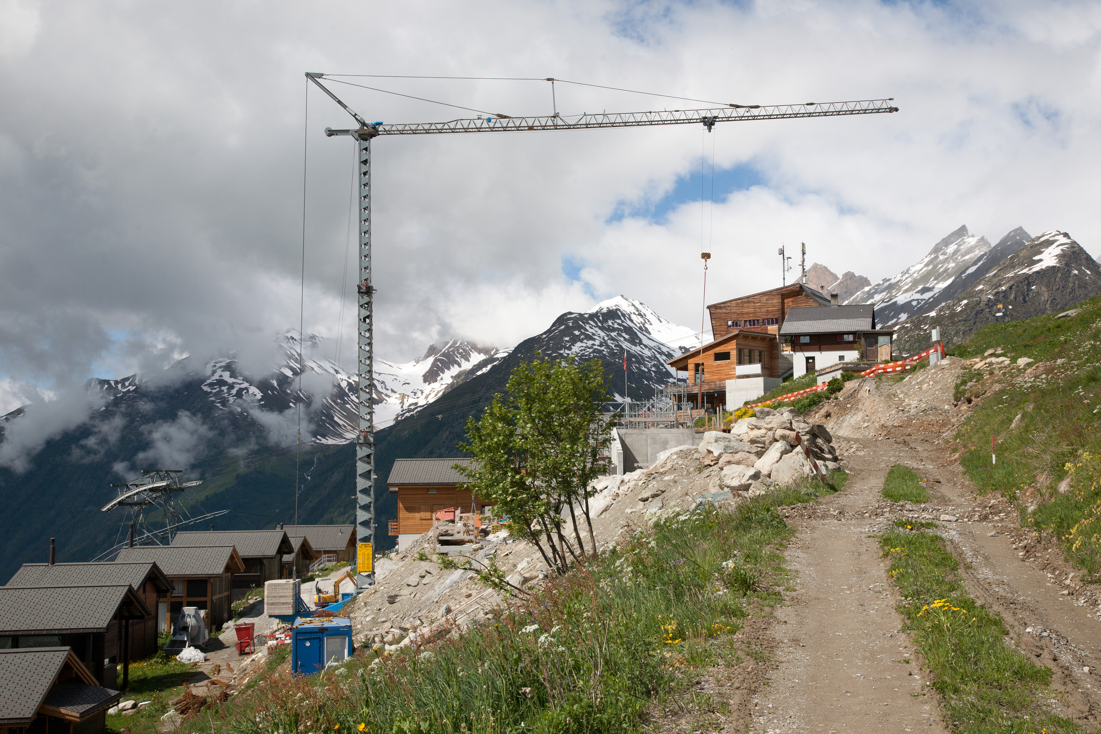 خلال السنوات الأربعة الأخيرة، تمّ بناء أكثر من 200 منزل جبلي في منطقة لوتشنتال وحدها في الفالي، وهي تستغلّ لأغراض سياحية بشكل مكثف، وتستقبل السياح في فصل الشتاء بالدرجة الأولى. وعلى العكس مما كان سائدا في السنوات السابقة، حيث كانت بداية فصل الصيف تشهد حركة بناء في نفس الوقت في خمس أو ست ورشات بناء، لا نشاهد في بداية صيف هذا العام سوى رافعة واحدة في القرية السياحية. ويبدو أن المبادرة الشعبية المناهضة لبناء غير محدود لمحلات إقامة ثانوية، التي مازال السياسيون يناقشون كيفية تطبيقها، قد بدأت تاتي ثمارها بشكل مبكر. (الصور: Christoph Balsiger swissinfo.ch).