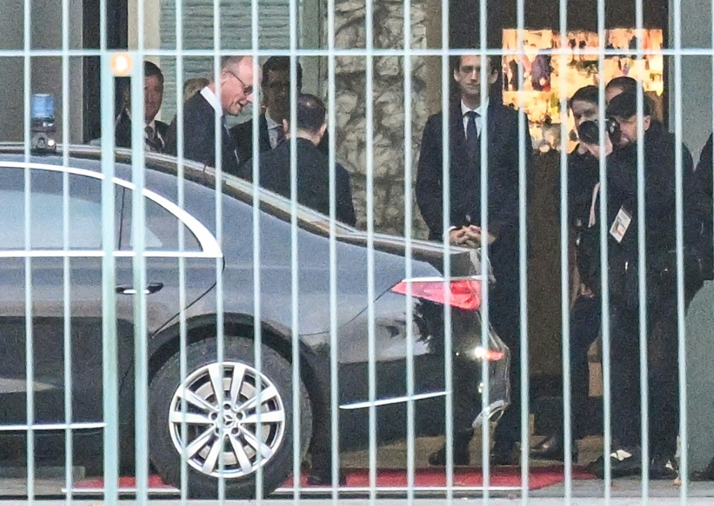 ورصد مصور في وكالة فرانس برس الزعيم الأوكراني وهو يغادر مقر المستشارية الألمانية، مكان انعقاد الاجتماع، قبيل الساعة التاسعة مساء (الثامنة مساء بتوقيت غرينتش).