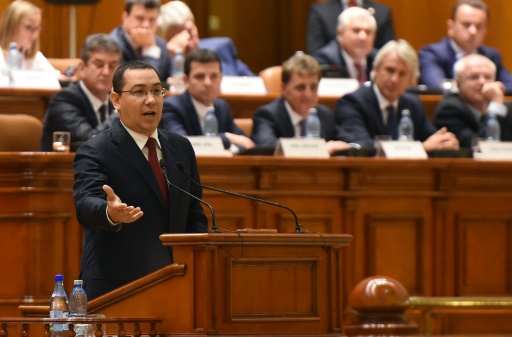 رئيس الوزراء الروماني فيكتور بونتا في خطاب في البرلمان الروماني في بوخارست في 29 ايلول/سبتمبر 2015 afp_tickers