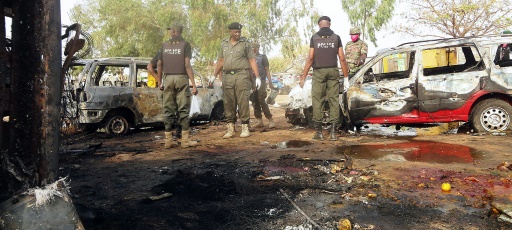 انتشار للشرطة النيجيرية في موقع هجوم انتحاري في كانو في 24 شباط/فبراير 2015 afp_tickers