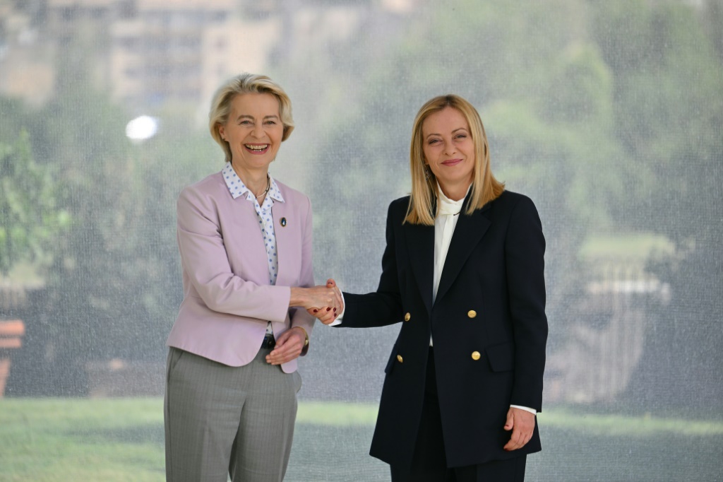 ورئيسة المفوضية الأوروبية موجودة في روما لدعم هذا البرنامج الذي تدافع عنه ميلوني.