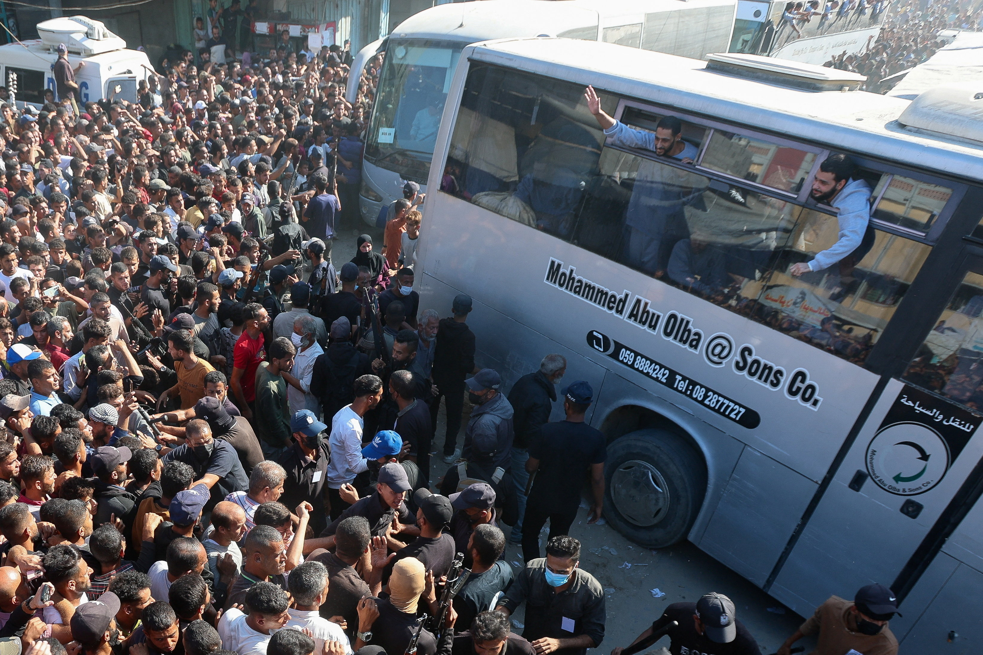 رام الله/القاهرة (رويترز) – سارع فلسطينيون لاحتضان سجناء محررين بموجب اتفاق وقف إطلاق النار توسطت فيه الولايات المتحدة لدى وصولهم بالحافلات إلى الضفة الغربية المحتلة وقطاع غزة يوم الاثنين.