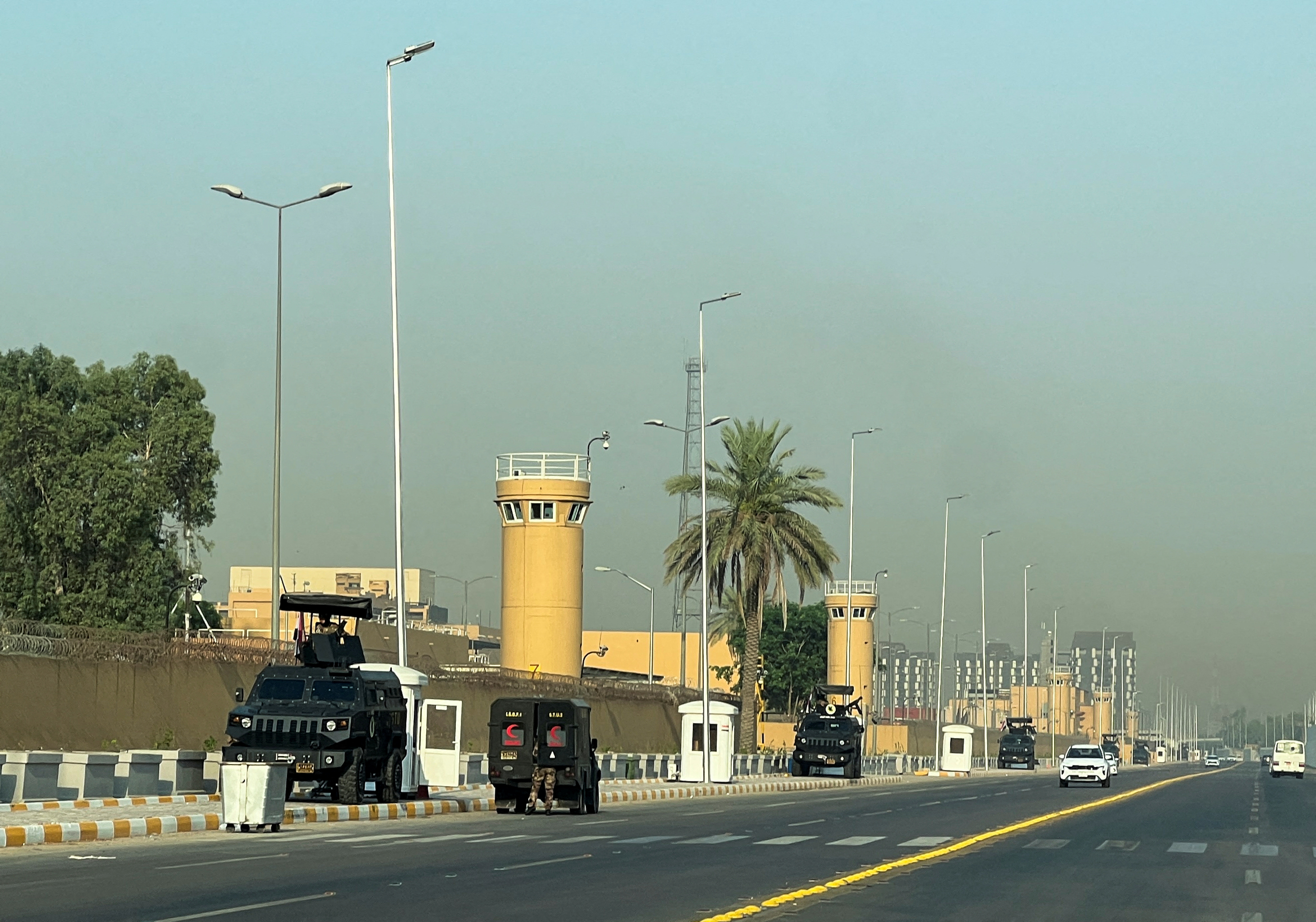وكالة: صاروخ يضرب مهبط طائرات هليكوبتر داخل مجمع السفارة الأمريكية في بغداد