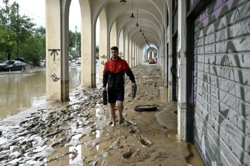رجل يسير في شارع غمرته المياه في فولوس بوسط اليونان في 6 أيلول/سبتمبر 2023 afp_tickers
