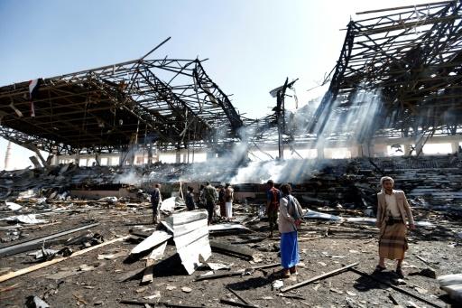 يمنيون يفحصون موقع غارة جوية نسبها المتمردون الحوثيون إلى السعودية في العاصمة صنعاء بتاريخ 5 تشرين الثاني/نوفمبر، 2017 afp_tickers