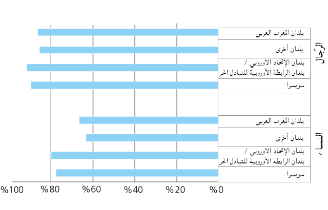 وبلغة الأرقام الفارق بين نسبة التشغيل في صفوف السويسريين ونسبة التشغيل في صفوف المهاجرين المغاربيين لا تزيد عن 6% بالنسبة للرجال، في الوقت الذي تصل فيه إلى 18% بالنسبة للنساء. كما تشير الأرقام الواردة في التقرير إلى أن نسبة الرجال المغاربيين المشتغلين تزيد عن نسبة نظرائهم من بلدان أخرى، من خارج الاتحاد الاوروبي ورابطة بلدان التبادل الحر.