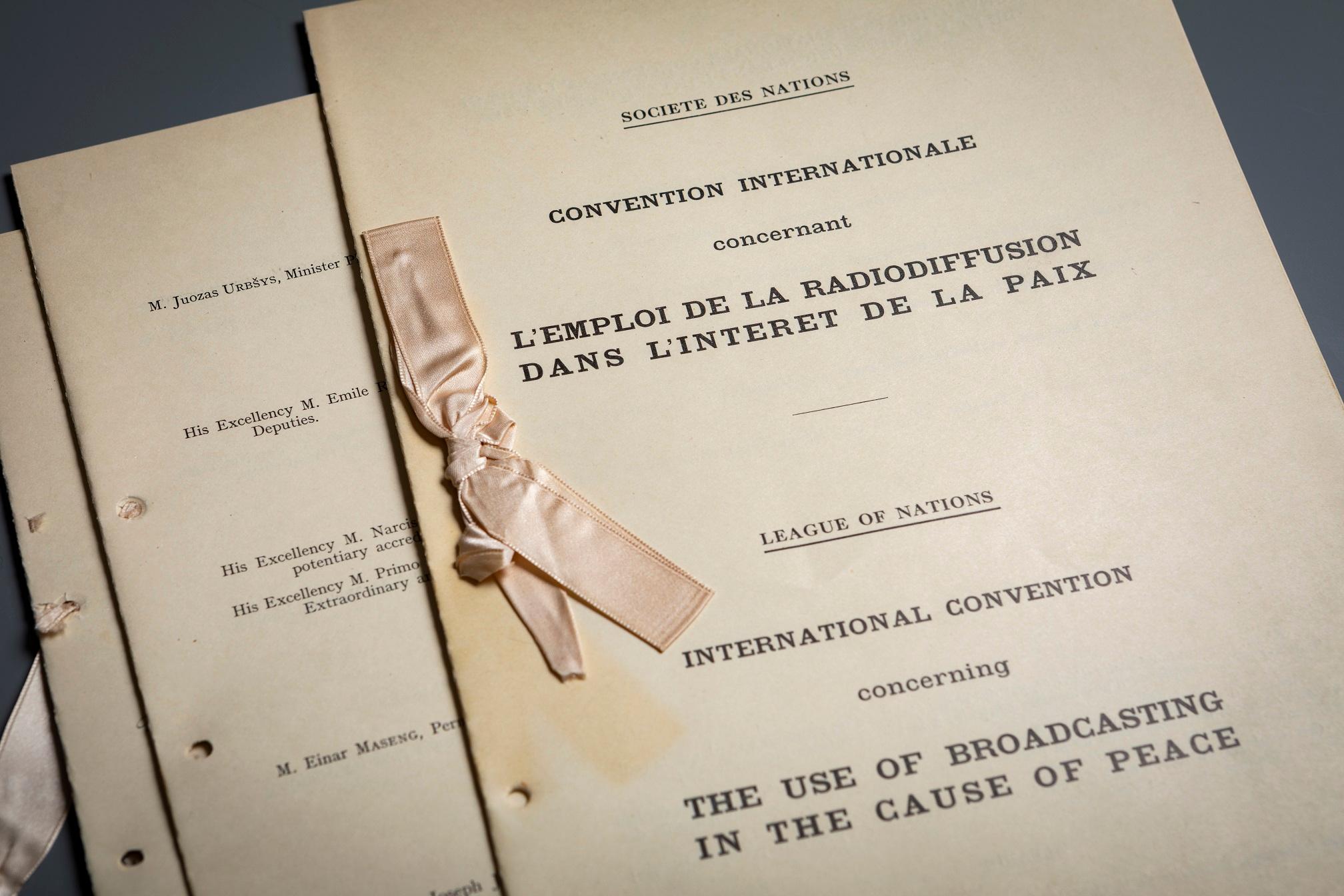 ولمواجهة هذا التحكّم بالعقول، الذي يثير كراهية الآخر وتجريده من إنسانيته، حاولت عصبة الأمم أن تردّ. ففي عام 1936، تمَّ الكشف في مؤسسة بودمر عن اتفاقية دولية بشأن استخدام البث الإذاعي لصالح السلام تشجع الدول على مراقبة البرامج التي يتم بثها انطلاقا من أراضيها بحيث «لا تُشكّل تحريضاً على الحرب» ولا تشجع «على الأعمال التي من شأنها أن تؤدي إلى الحرب». وتتعهد الدول العشرون الموقعة عليها أيضاً بالإيقاف الفوري لأي بث «من شأنه أن يُضر بالتفاهم الدولي من خلال ادعاءات تكون عدم صحتها معروفة أو يجب أن تكون معروفة من قبل الأشخاص المسؤولين عن البث». اليوم، تحاول الأمم المتحدة أيضاً مكافحة نشر خطاب الكراهية والمعلومات الكاذبة على شبكات التواصل الاجتماعي. في الماضي، وصلت سابقتها ـ عصبة الأمم ـ بعد فوات الأوان.