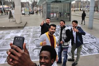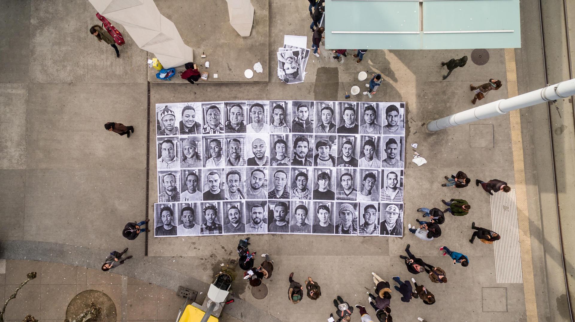 كجزء من المشروع الدولي "التعبير عن مكنون النفس"، الذي أطلقه فنان الشارع الفرنسي من أصل تونسي جون ريناي، نجح المصوّر مارك هونلي في التقاط صور لواحد وخمسين طالب لجوء يقطنون في ملاجئ للحماية المدنية في كانتون جنيف. لكن هذه الصور التي كانت تعرض في ساحة عامة بمدينة جنيف لم تقاوم طويلا دوس الاقدام وعوامل مناخية، ما جعل المنظمون يفكّرون في نقلها إلى مؤسسة مخصصة للعروض الفنية.