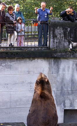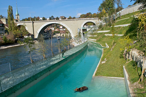 انقضى عهد حديقة “Bärengraben” الشهيرة أو ما كان يُـعرف باسم ‘حفرة الدببة’ في برن. فقد أصبح لهذه الكائنات حديقة جديدة تتسع 10.000 متر مربّـع تمتد على ضفاف نهر الآر Aar بالعاصمة الفدرالية برن. فضاء ملحق بحديقة الحيوانات “Dällhölzli” بالمدينة.