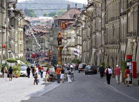 شُيِّـدت في القرن الثاني عشر على تلّة داخل منعطف شِـبه دائري لنهر آر Aare، أحد روافد نهر الرّاين، وجاء تصميم المدينة بشكل طولي وعلى هيئة صفوف من الأبنية واستمر تجديدها مع الحفاظ على طابعها الأصلي، الذي يعود إلى القرون الوسطى، ودخلت منذ عام 1983 ضمن قائمة التراث العالمي لليونسكو. (swiss-image.ch/Terence du Fresne)
