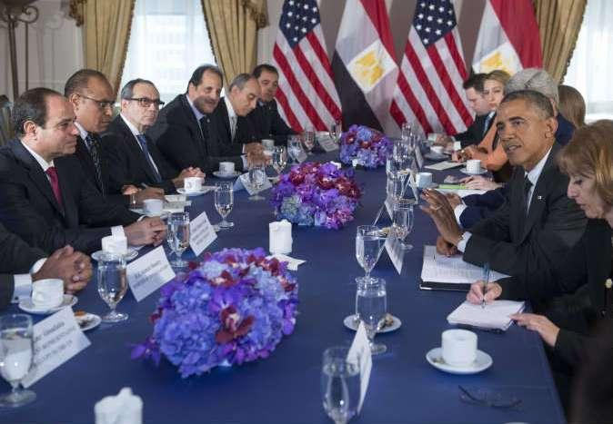 • الرئيس أوباما استهل المباحثات مع الرئيس السيسي قائلاً: أرحِّب بالرئيس السيسي في نيويورك وفي الولايات المتحدة، وأنتهز هذه الفرصة بكل شغف لأتبادل معه الأفكار. وأضاف: “من الواضح لدينا أن العلاقات المصرية – الأمريكية تشكل حجر زاوية مهمّة لنا في سياستنا الأمنية والسياسة الأمريكية في الشرق الأوسط منذ وقت طويل. وأوضح أن هذه هي الفرصة الأولى لأتناقش وجهاً لوجه مع الرئيس السيسي.