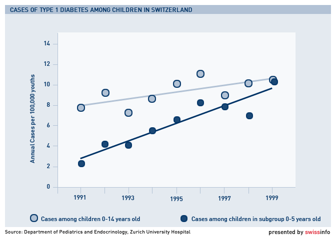 وقد الدكتور صرّح دانيال كونراد، مدير قسم أمراض السكّـري والغُـدد الصمّـاء بجامعة زيورخ بهذه المناسبة في حديث لسويس انفو قائلا: “في السنوات القليلة الماضية، هناك عدد من الأطفال ممّـن تتراوح أعمارهم بين السنتين والثلاث سنوات تمّ تشخيص حالتهم المرضية في وقت متأخّـر جدا”.