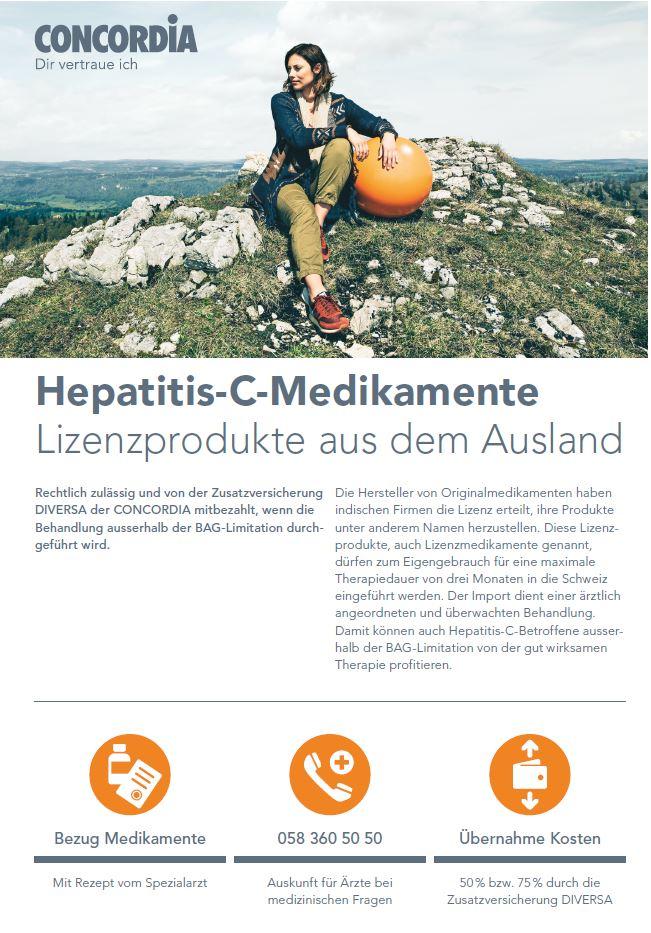 ماتياس شتاينر، المسؤول عن مشروع التهاب الكبد C في شركة كونكورديا، قال موضحا: «لقد قررنا تغطية علاج التهاب الكبد C لأنه ليس بإمكان جميع المرضى الحصول على الدواء بسعر جيّد. والعلاقات الجيدة التي تربطنا بـ SEVHep تضمن لنا إعلام هؤلاء المرضى بشكل جيّد». ويمكن أن يصل قسط التأمين الصحي Diversa الشهري إلى 19 فرنك، بحسب الصيغة. وتتكفّل المؤسسة الخيرية لشركة التأمين بتعويض الأشخاص الذين يُعانون من التهاب الكبد C ولكنهم غير قادرين على دفع ثمن العلاج.