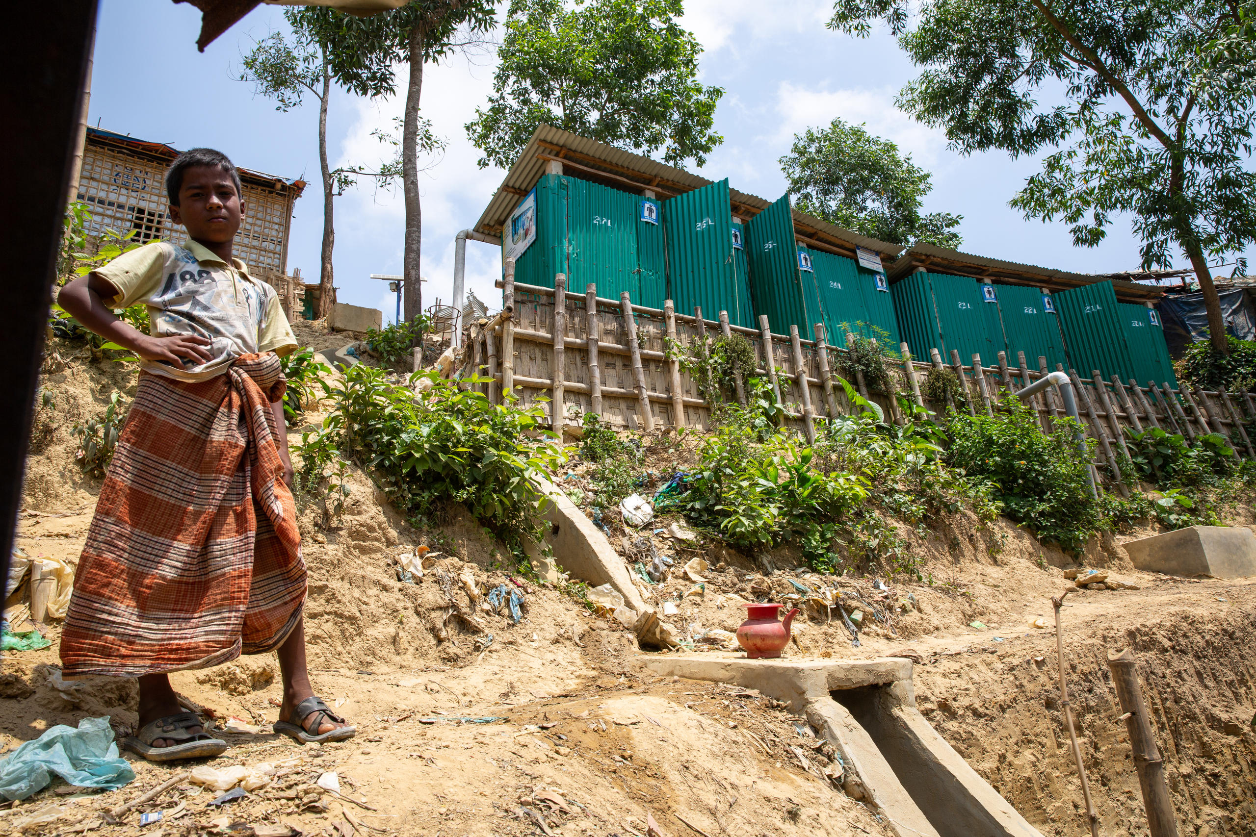 فما حدث في الواقع، هو أن الروهينغيا عقب وصولهم إلى هنا، كانوا مُضطَرّين تقريباً لإزالة الغابات المتواجدة على التلال المحيطة بمدينة كوكس بازار الساحلية، بسبب حاجتهم إلى المساحة والخشب لبناء أكواخهم وإشعال النار. واليوم، لم يَبْقَ هناك من شيء يعمل على تماسك التربة ومَنع انجرافها. “كانت هذه هي المشكلة الكبيرة التالية عندما وَصَلْتُ إلى هنا. فمع نهاية شهر مايو، وبحلول شهر يونيو، تبدأ الرياح الموسمية [أو رياح المنسون]، وما يرافقها من تساقط كثيف من الأمطار، مما يُعَرض الأكواخ المشيدة على المنحدرات لمخاطر الانهيارات الأرضية”.