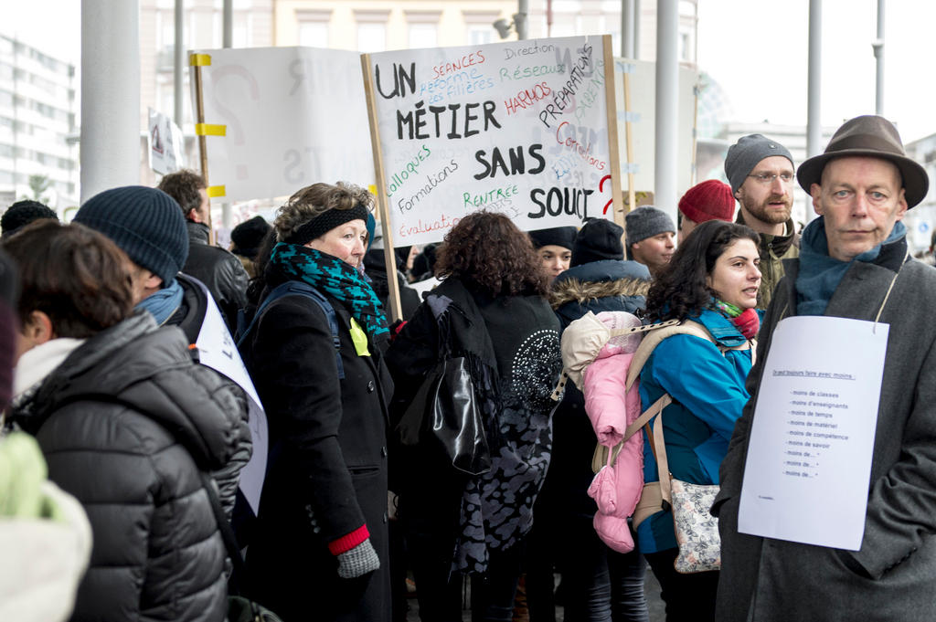 دائما في كانتون جنيف، خرج ما يقارب عن عشرة آلاف موظف إلى الشارع في شهر نوفمبر 2015، من بينهم مدرسون وضباط شرطة احتجاجا كذلك على خطط حكومية لتخفيض أعداد الموظفين. وقد تزامن هذا التحرّك مع إضراب نفذه عمال قطاع البناء على المستوى الوطني.