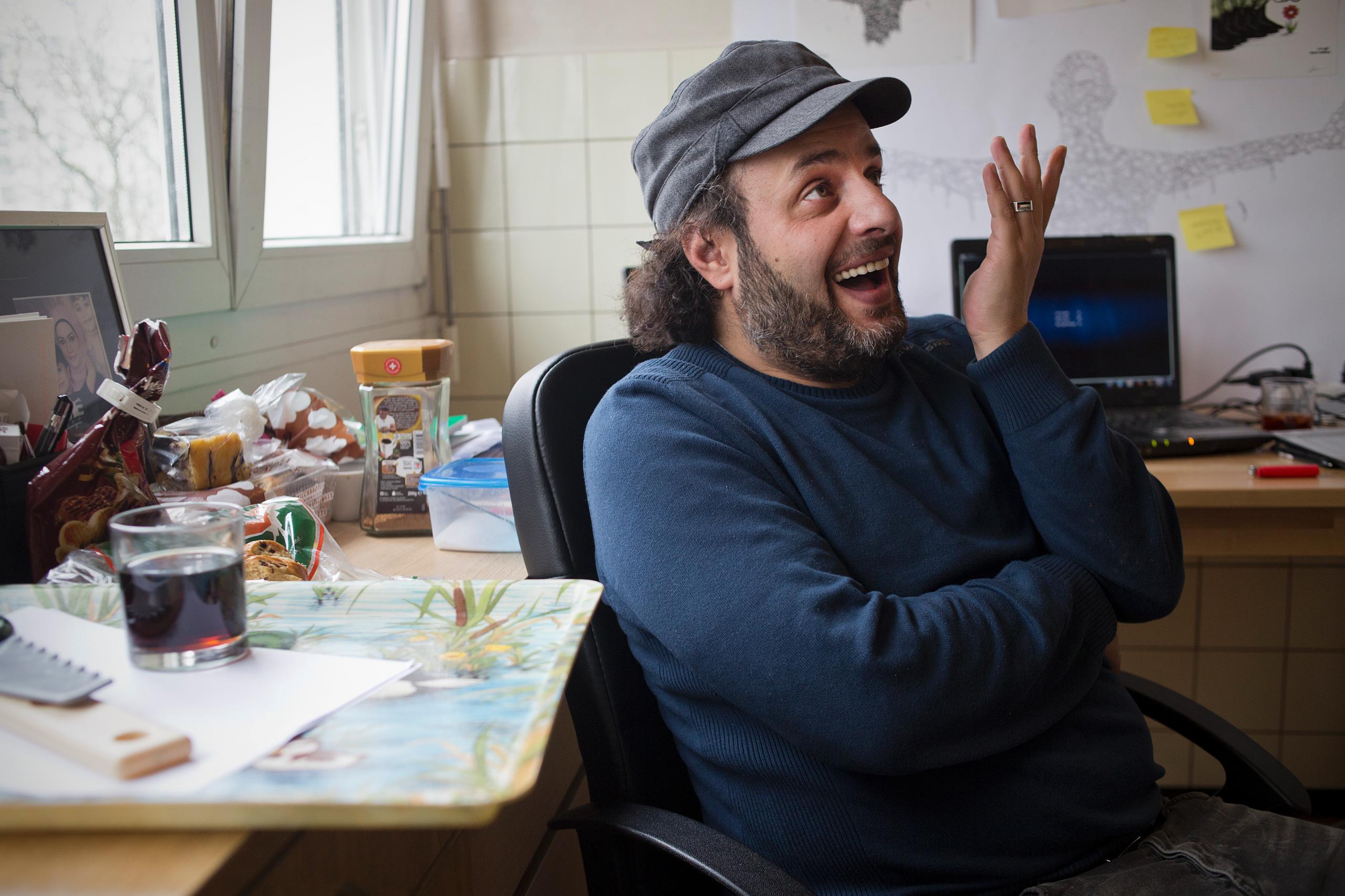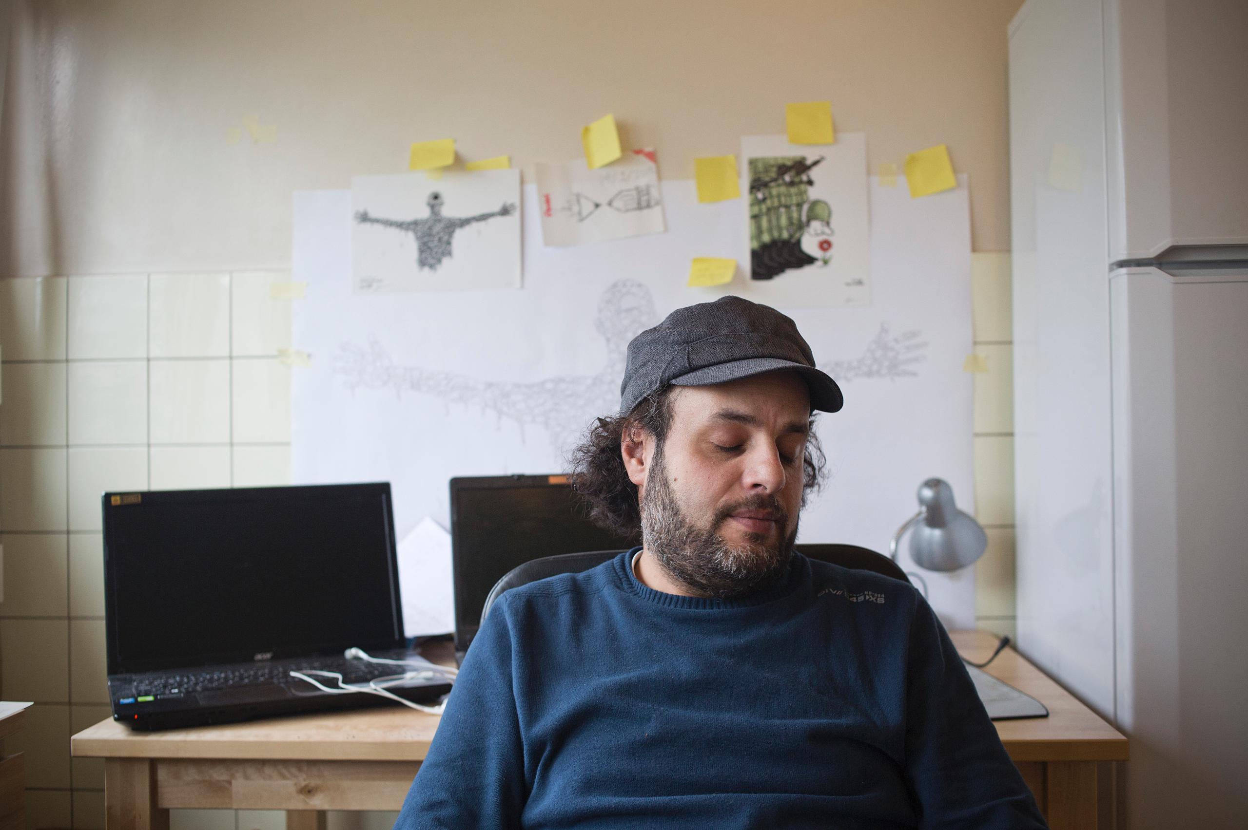 رسام الكاريكاتور السوري الفلسطيني واللاجئ بسويسرا هاني عبّاس، انسان اعتاد كما يحلو له القول على "العيش في مدن ليست له". عندما أحسّ بالخطر يتهدّد حياته، وبالحصار تشتدّ قبضته على مخيّم اليرموك وأهله، غادره إلى مناطق سورية أخرى أكثر أمنا، ثم منها إلى لبنان، ومن هذه الاخيرة إلى جنيف حيث يقيم مع عائلته الصغيرة منذ سنة ونصف تقريبا.