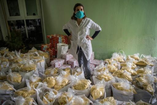 ويتناوب العاملون لحساب الجمعية في فرق داخل قاعة كبيرة تستعمل عادة كمطبخ، لتحضير أكياس محملة بالدقيق والعدس والمعجنات والرز والزيت والشاي والصابون ومواد النظافة، بدون إغفال مطبوع يشرح التدابير الضرورية للوقاية من الإصابة بالفيروس.