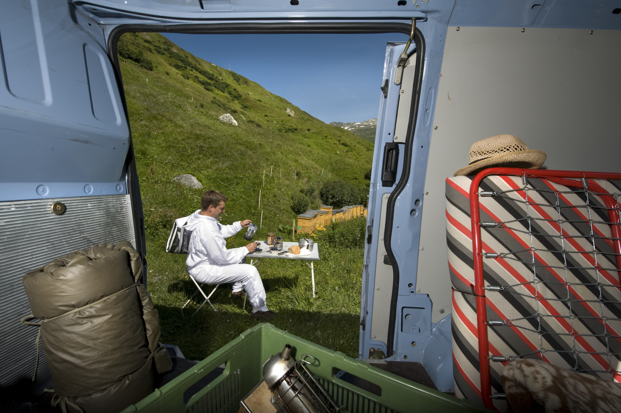 30%的粮食和70%的饲料作物依赖于昆虫授粉。这其中蜜蜂起到了极其重要的作用。尽管瑞士的蜜蜂分布密度较高,但其数量却有下降趋势。瓦螨和欧洲幼虫腐臭病等疾病令瑞士蜜蜂数量大减。而养蜂人的数量也在减少,他们的平均年龄已达到了70岁。养蜂事业需要第二个春天。所有照片由Tomas Wüthrich拍摄。