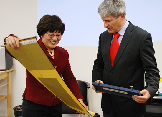 王冬梅女士提出,中国国际广播电台现有61种语言,希望今后至少在9种语言上,能采用多种多样的形式与瑞士资讯达成更广泛的合作。她对以RSS服务形式互相链接、共同推广汉语等合作建议表示赞同。