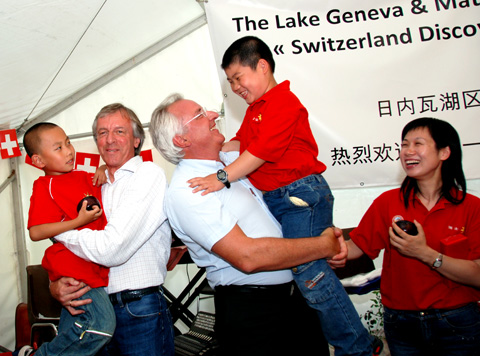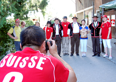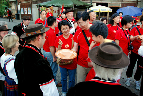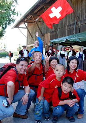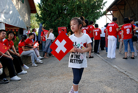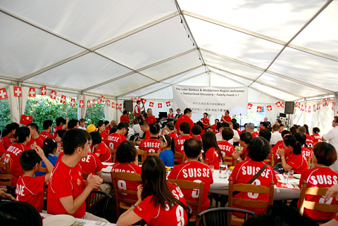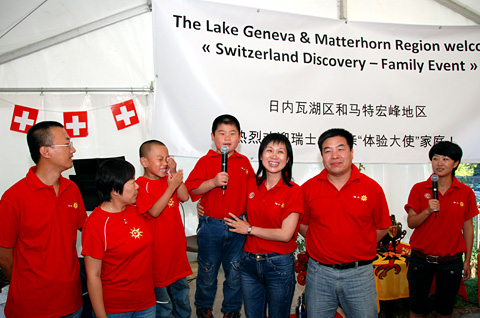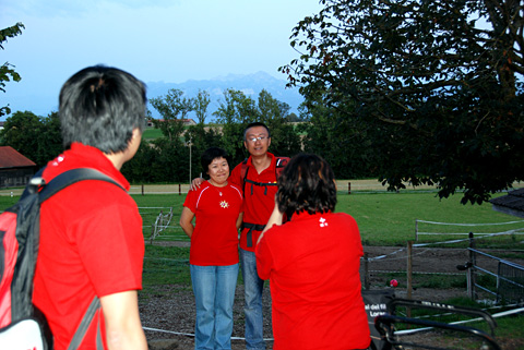 2009年8月13日,瑞士国家旅游局“2009瑞士一家亲”家庭旅游宣传活动中的大使家庭和随行媒体,在近距离接触瑞士之后,与其他3个三个自费旅行团一起共聚瑞士山村的一家农舍,共同总结了此次瑞士之旅的体验。 (图/文:瑞士资讯swissinfo.ch,邵大海)