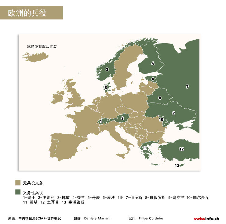因此越来越多的国家缩短了义务兵役年限,并且有很多男性公民,主动放弃了兵役,而改服民役,Szvircsev Tresch说。