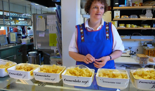 瑞士出产450多种不同品种的奶酪。在瑞士卖奶酪,首先要给人尝,因为风味千差万别,不试一下怎么买呢。