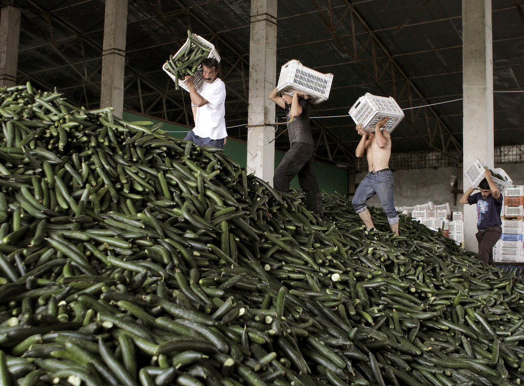 欧洲许多国家都出现新鲜蔬菜滞销状况,尤其是黄瓜被大批量销毁,为菜农造成严重损失,欧洲农业协会公布的数据显示:农民因黄瓜造成的损失,每周达4亿欧元,而欧盟决定向农民补偿的资金只有1.5亿欧元。瑞士为了避免大批量销毁黄瓜,将采取促销活动,从6月9日至6月11日,瑞士大超市Coop的全国连锁店中,每根黄瓜的价钱从1.50瑞郎降到0.95瑞郎。