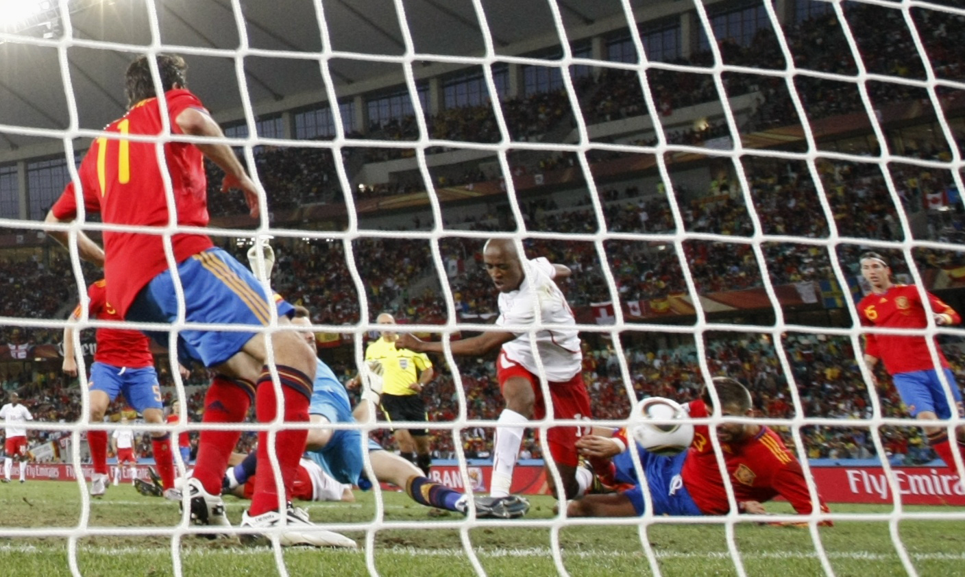 下半场比赛进行到51分钟时,瑞士队16号Gelson Fernandes在一片混乱中越过守门员,将球推入西班牙球门,1:0,并且瑞士队将这个比分一直保持到终场,制造了本届世界杯开赛以来最大的冷门。 (瑞士资讯swissinfo.ch/图:keystone)