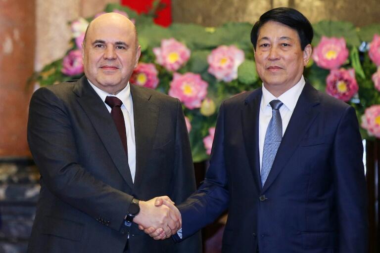 (法新社河内15日电) 俄罗斯总理米舒斯京(Mikhail Mishustin)今天会见越南国家主席梁强(Luong Cuong),寻求加强长期盟友的支持。