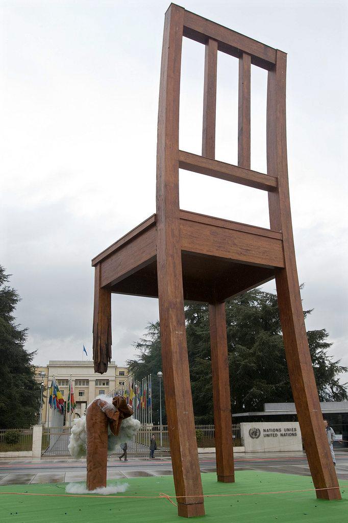 相比之下,另一件临时作品要幸运很多,并最终取得其传奇地位。残破的椅子,一件高12米的木制雕塑,由瑞士艺术家丹尼尔·贝尔赛(Daniel Berset)创作,是万国广场一个永久性的旅游景点。你甚至能在日内瓦版的大富翁游戏板上看到它。